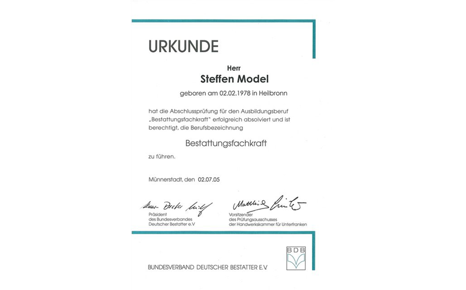 Seit Juni 2015 f%C3%BChrt nun der Enkel von Albert Knaus und Neffe von Helmut Knaus, Steffen Model durch die Gr%C3%BCndung von Model Bestattungen die Familientradition in der dritten Generation weiter.