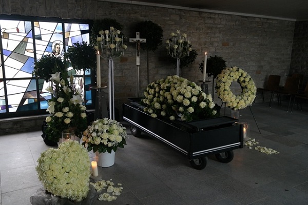 Blumen trösten beim Verlust eines nahestehenden Menschen. Einfühlsam nehmen unsere Floristinnen Ihre Wünsche auf und setzen sie in eine angemessene Trauerfloristik um. Das Team von funk - Blumenhandwerk garantiert Ihnen, dass der Blumenschmuck am Sarg, in der Kirche und am Grab pünktlich ankommt und einen tröstenden Rahmen bildet.