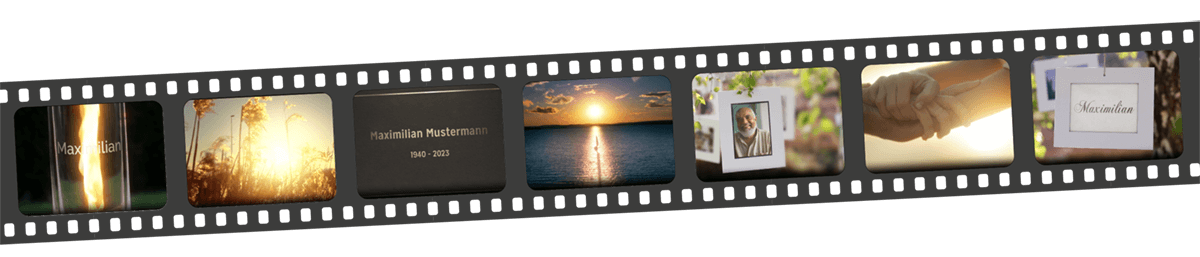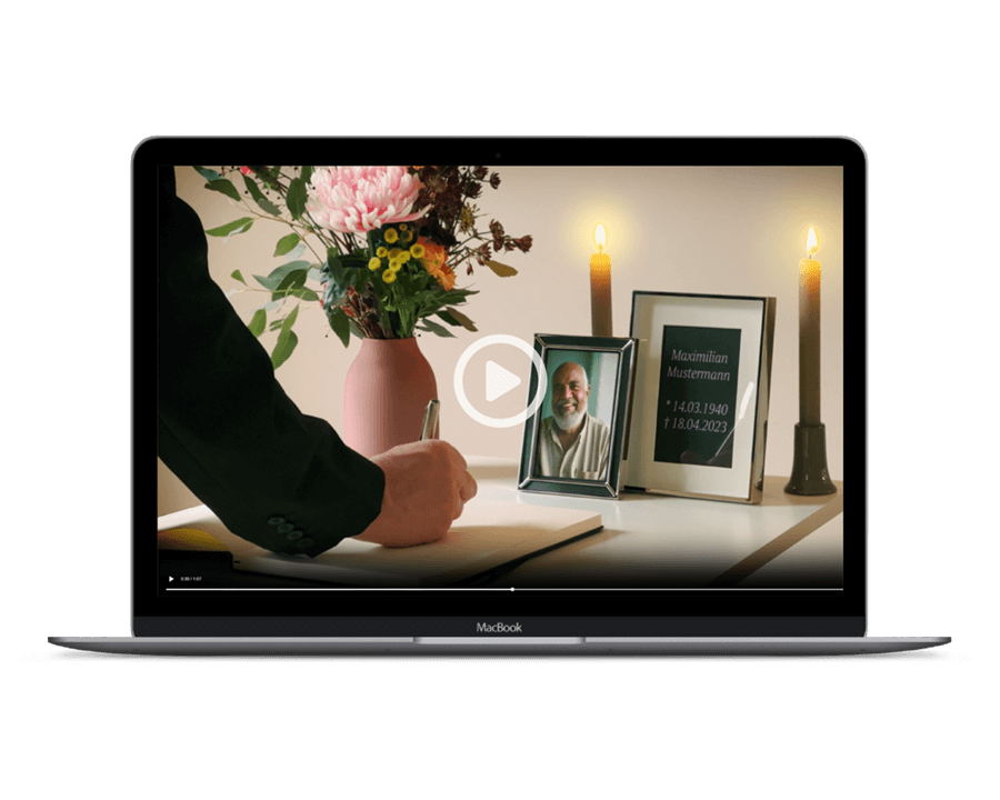 Nicht alle Angehörigen erhalten die Tageszeitung, in der die Traueranzeige abgedruckt ist. Mit dieser sehr persönlichen und emotionalen Videoanzeige können Sie Ihre Kontakte via Social Media und Messenger-Dienste über das Ableben eines geliebten Menschen informieren. Das Video wurde speziell für soziale Netzwerke entwickelt. Es kann im WhatsApp-Status, in WhatsApp-Gruppen, Instagram-Stories und vielem mehr geteilt werden.