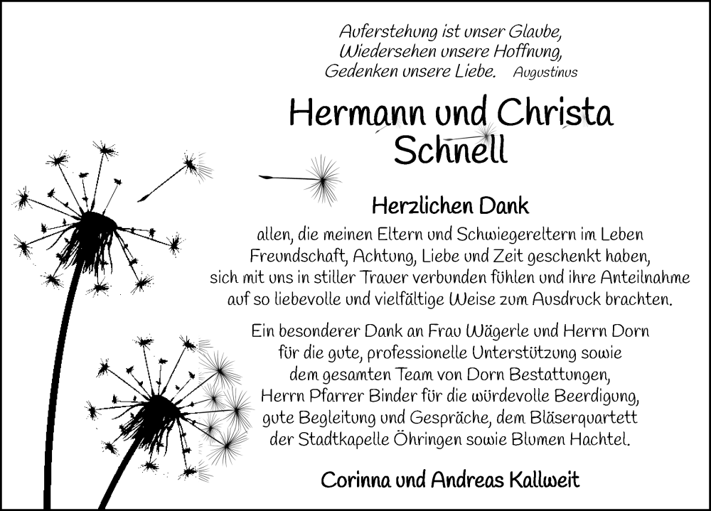 Hier finden Sie alle Traueranzeigen aus der Zeitung, die bisher für Christa Schnell erschienen sind. Weitere Traueranzeigen, die in der Zeitung erscheinen, werden hier ebenfalls aufgelistet