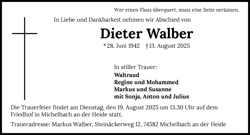 Hier finden Sie alle Traueranzeigen aus der Zeitung, die bisher für Dieter Walber erschienen sind. Weitere Traueranzeigen, die in der Zeitung erscheinen, werden hier ebenfalls aufgelistet