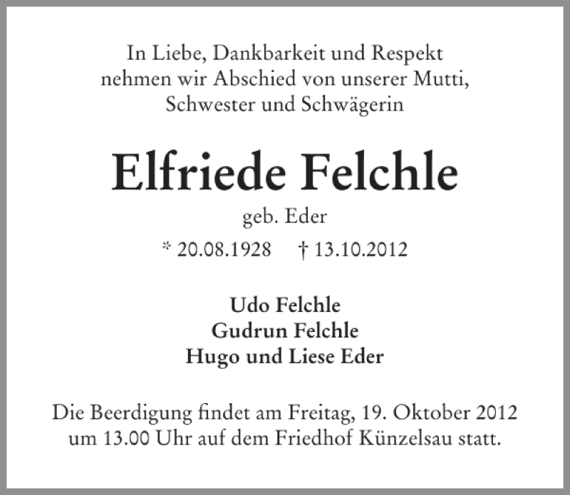 Hier finden Sie alle Traueranzeigen aus der Zeitung, die bisher für Elfriede Felchle erschienen sind. Weitere Traueranzeigen, die in der Zeitung erscheinen, werden hier ebenfalls aufgelistet