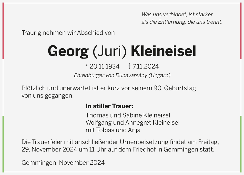 Hier finden Sie alle Traueranzeigen aus der Zeitung, die bisher für Georg Kleineisel erschienen sind. Weitere Traueranzeigen, die in der Zeitung erscheinen, werden hier ebenfalls aufgelistet