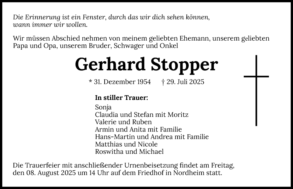 Hier finden Sie alle Traueranzeigen aus der Zeitung, die bisher für Gerhard Stopper erschienen sind. Weitere Traueranzeigen, die in der Zeitung erscheinen, werden hier ebenfalls aufgelistet
