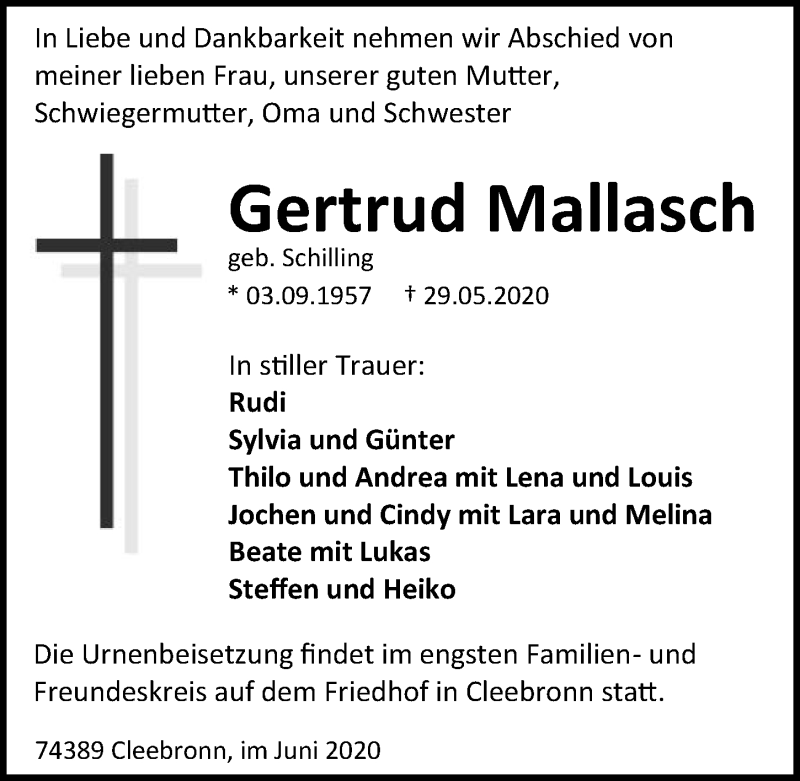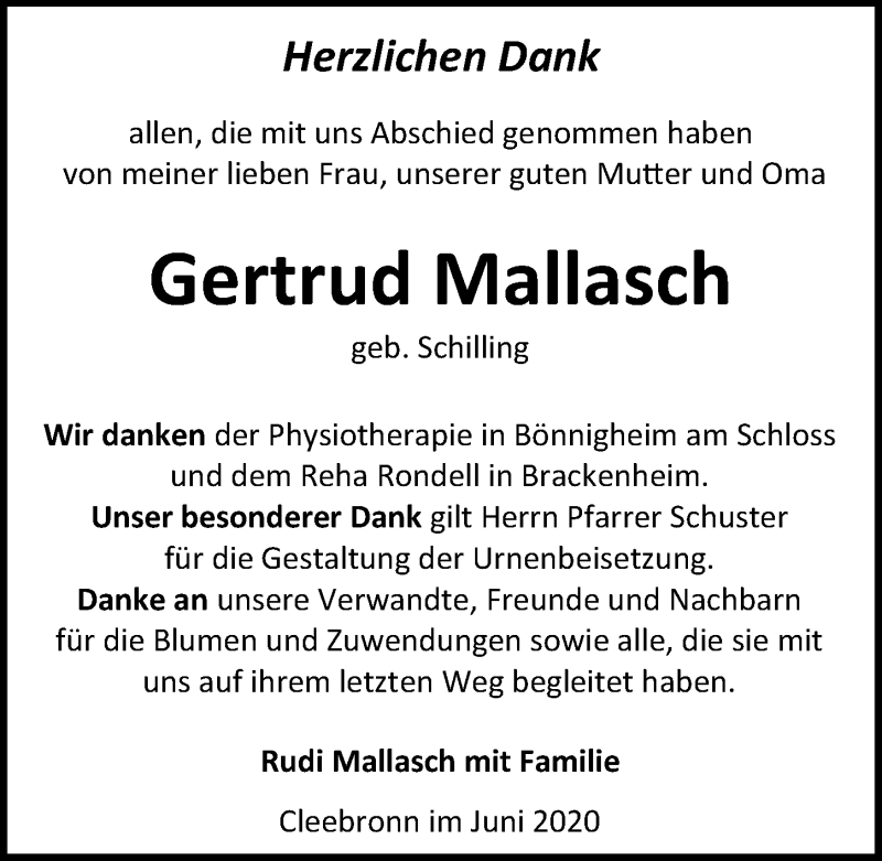 Hier finden Sie alle Traueranzeigen aus der Zeitung, die bisher für Gertrud Mallasch erschienen sind. Weitere Traueranzeigen, die in der Zeitung erscheinen, werden hier ebenfalls aufgelistet