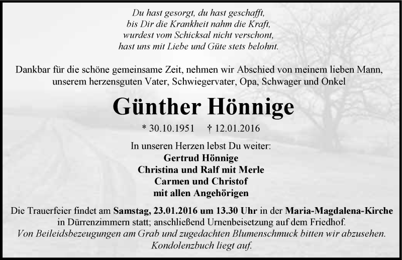 Hier finden Sie alle Traueranzeigen aus der Zeitung, die bisher für Günther Hönnige erschienen sind. Weitere Traueranzeigen, die in der Zeitung erscheinen, werden hier ebenfalls aufgelistet