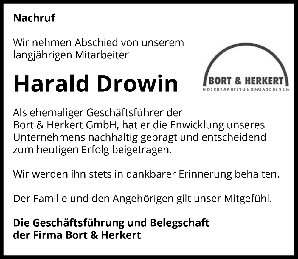 Hier finden Sie alle Traueranzeigen aus der Zeitung, die bisher für Harald Drowin erschienen sind. Weitere Traueranzeigen, die in der Zeitung erscheinen, werden hier ebenfalls aufgelistet