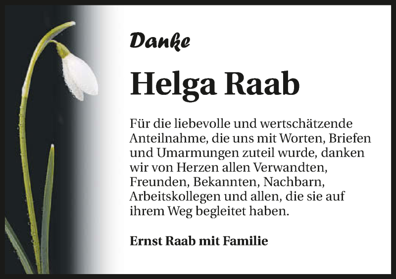 Hier finden Sie alle Traueranzeigen aus der Zeitung, die bisher für Helga Raab erschienen sind. Weitere Traueranzeigen, die in der Zeitung erscheinen, werden hier ebenfalls aufgelistet