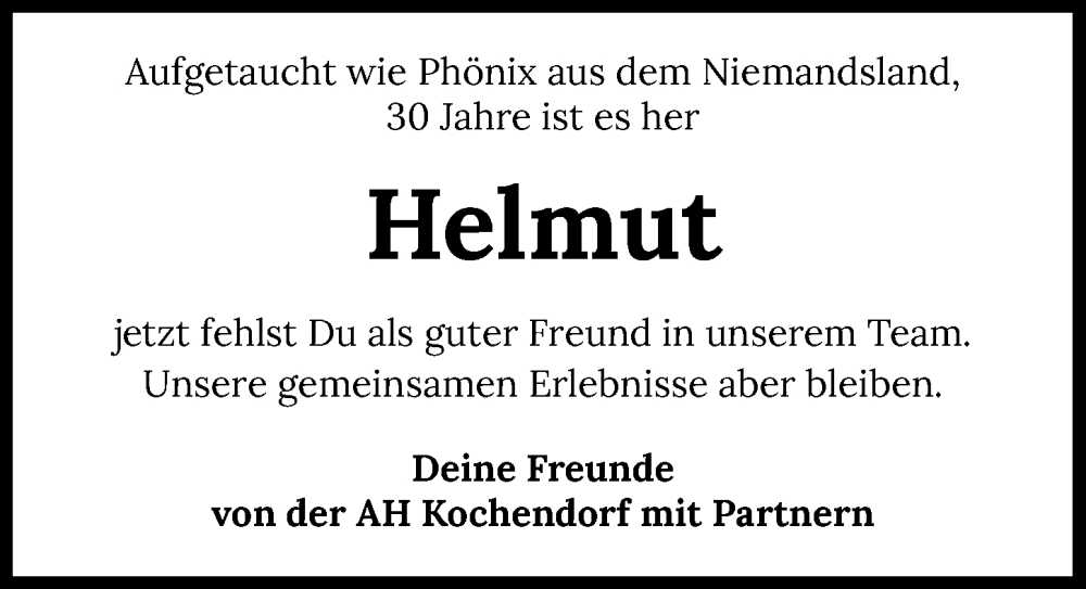 Hier finden Sie alle Traueranzeigen aus der Zeitung, die bisher für Helmut Bronni erschienen sind. Weitere Traueranzeigen, die in der Zeitung erscheinen, werden hier ebenfalls aufgelistet