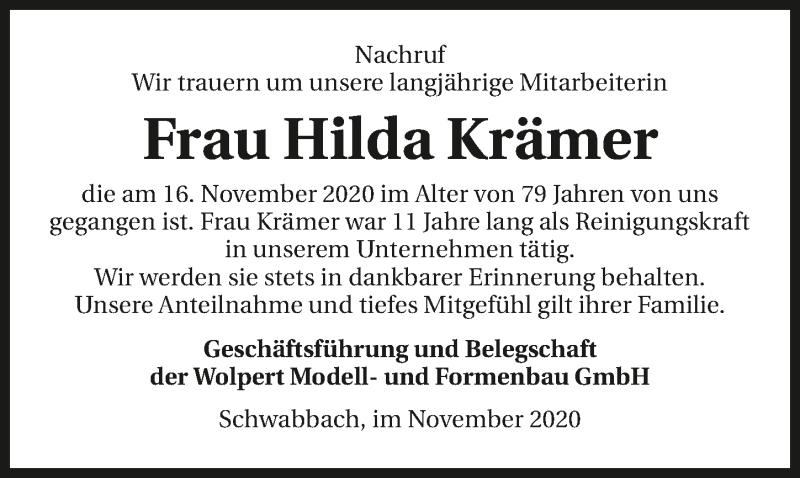 Hier finden Sie alle Traueranzeigen aus der Zeitung, die bisher für Hilda Krämer erschienen sind. Weitere Traueranzeigen, die in der Zeitung erscheinen, werden hier ebenfalls aufgelistet