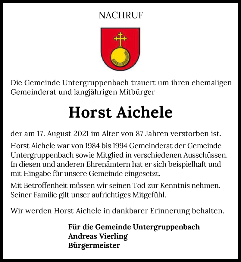 Hier finden Sie alle Traueranzeigen aus der Zeitung, die bisher für Horst Aichele erschienen sind. Weitere Traueranzeigen, die in der Zeitung erscheinen, werden hier ebenfalls aufgelistet