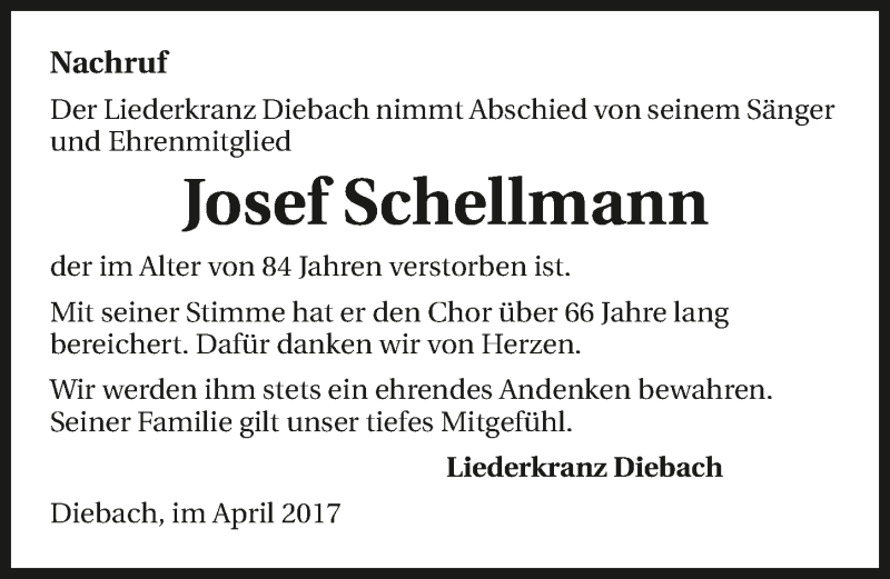 Hier finden Sie alle Traueranzeigen aus der Zeitung, die bisher für Josef Schellmann erschienen sind. Weitere Traueranzeigen, die in der Zeitung erscheinen, werden hier ebenfalls aufgelistet