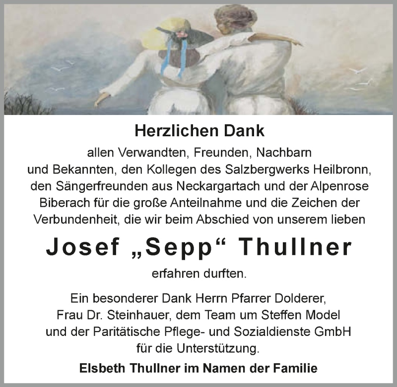 Hier finden Sie alle Traueranzeigen aus der Zeitung, die bisher für Josef Thullner erschienen sind. Weitere Traueranzeigen, die in der Zeitung erscheinen, werden hier ebenfalls aufgelistet