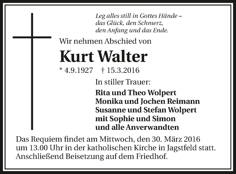 Hier finden Sie alle Traueranzeigen aus der Zeitung, die bisher für Kurt Walter erschienen sind. Weitere Traueranzeigen, die in der Zeitung erscheinen, werden hier ebenfalls aufgelistet