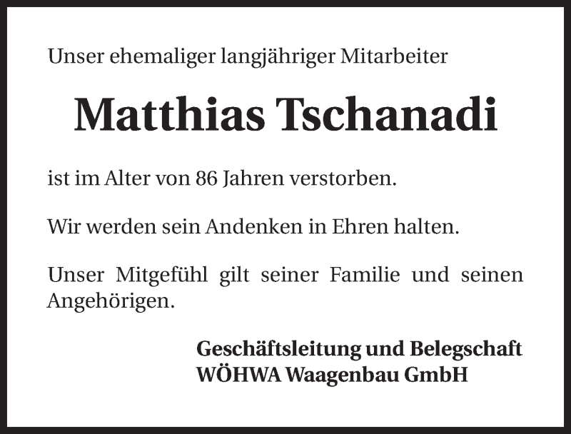 Hier finden Sie alle Traueranzeigen aus der Zeitung, die bisher für Matthias Tschanadi erschienen sind. Weitere Traueranzeigen, die in der Zeitung erscheinen, werden hier ebenfalls aufgelistet
