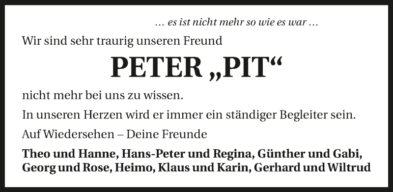 Hier finden Sie alle Traueranzeigen aus der Zeitung, die bisher für Peter Gilbert erschienen sind. Weitere Traueranzeigen, die in der Zeitung erscheinen, werden hier ebenfalls aufgelistet