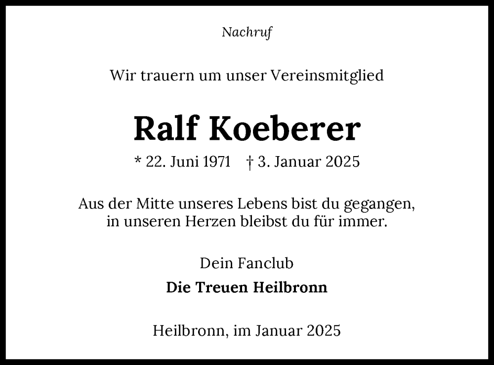 Hier finden Sie alle Traueranzeigen aus der Zeitung, die bisher für Ralf Koeberer erschienen sind. Weitere Traueranzeigen, die in der Zeitung erscheinen, werden hier ebenfalls aufgelistet