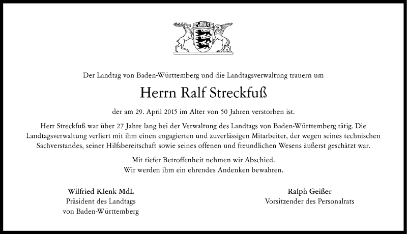 Hier finden Sie alle Traueranzeigen aus der Zeitung, die bisher für Ralf Streckfuß erschienen sind. Weitere Traueranzeigen, die in der Zeitung erscheinen, werden hier ebenfalls aufgelistet
