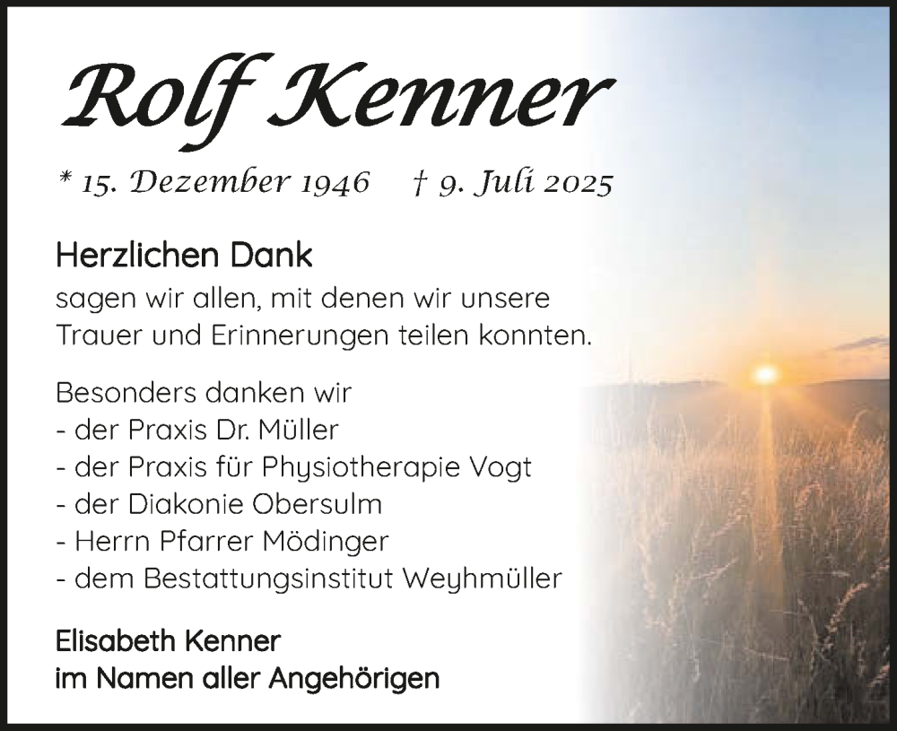 Hier finden Sie alle Traueranzeigen aus der Zeitung, die bisher für Rolf Kenner erschienen sind. Weitere Traueranzeigen, die in der Zeitung erscheinen, werden hier ebenfalls aufgelistet