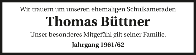 Hier finden Sie alle Traueranzeigen aus der Zeitung, die bisher für Thomas Büttner erschienen sind. Weitere Traueranzeigen, die in der Zeitung erscheinen, werden hier ebenfalls aufgelistet