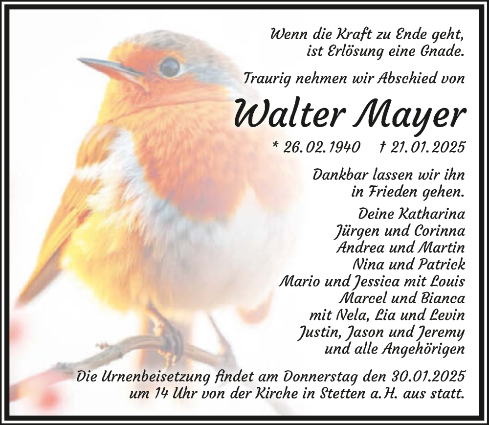 Hier finden Sie alle Traueranzeigen aus der Zeitung, die bisher für Walter Mayer erschienen sind. Weitere Traueranzeigen, die in der Zeitung erscheinen, werden hier ebenfalls aufgelistet
