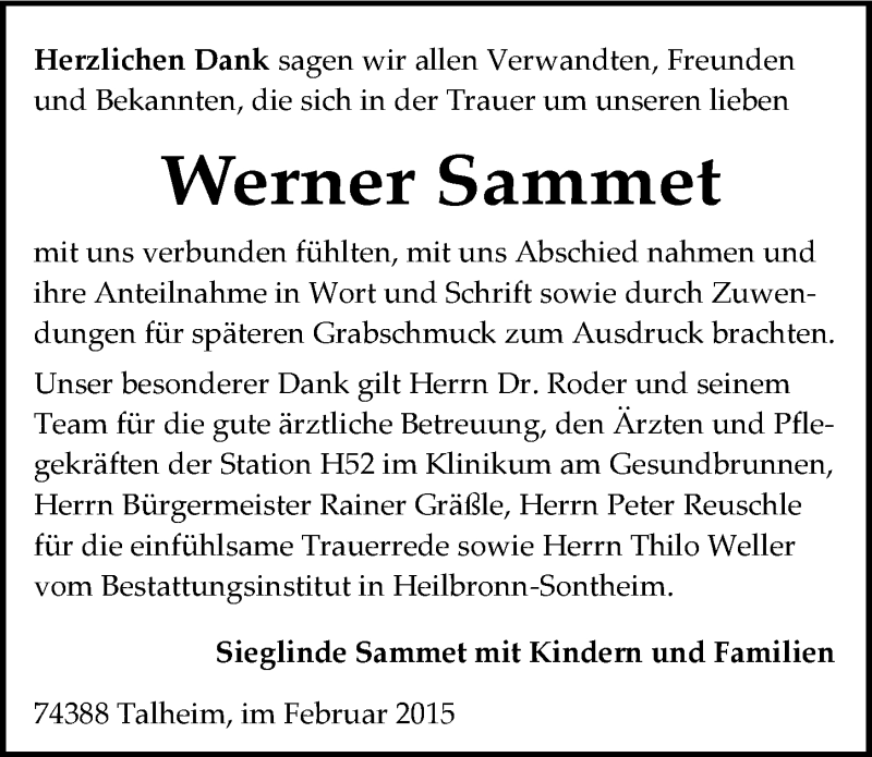 Hier finden Sie alle Traueranzeigen aus der Zeitung, die bisher für Werner Sammet erschienen sind. Weitere Traueranzeigen, die in der Zeitung erscheinen, werden hier ebenfalls aufgelistet