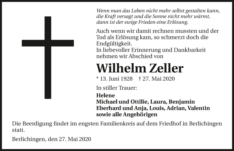 Hier finden Sie alle Traueranzeigen aus der Zeitung, die bisher für Wilhelm Zeller erschienen sind. Weitere Traueranzeigen, die in der Zeitung erscheinen, werden hier ebenfalls aufgelistet